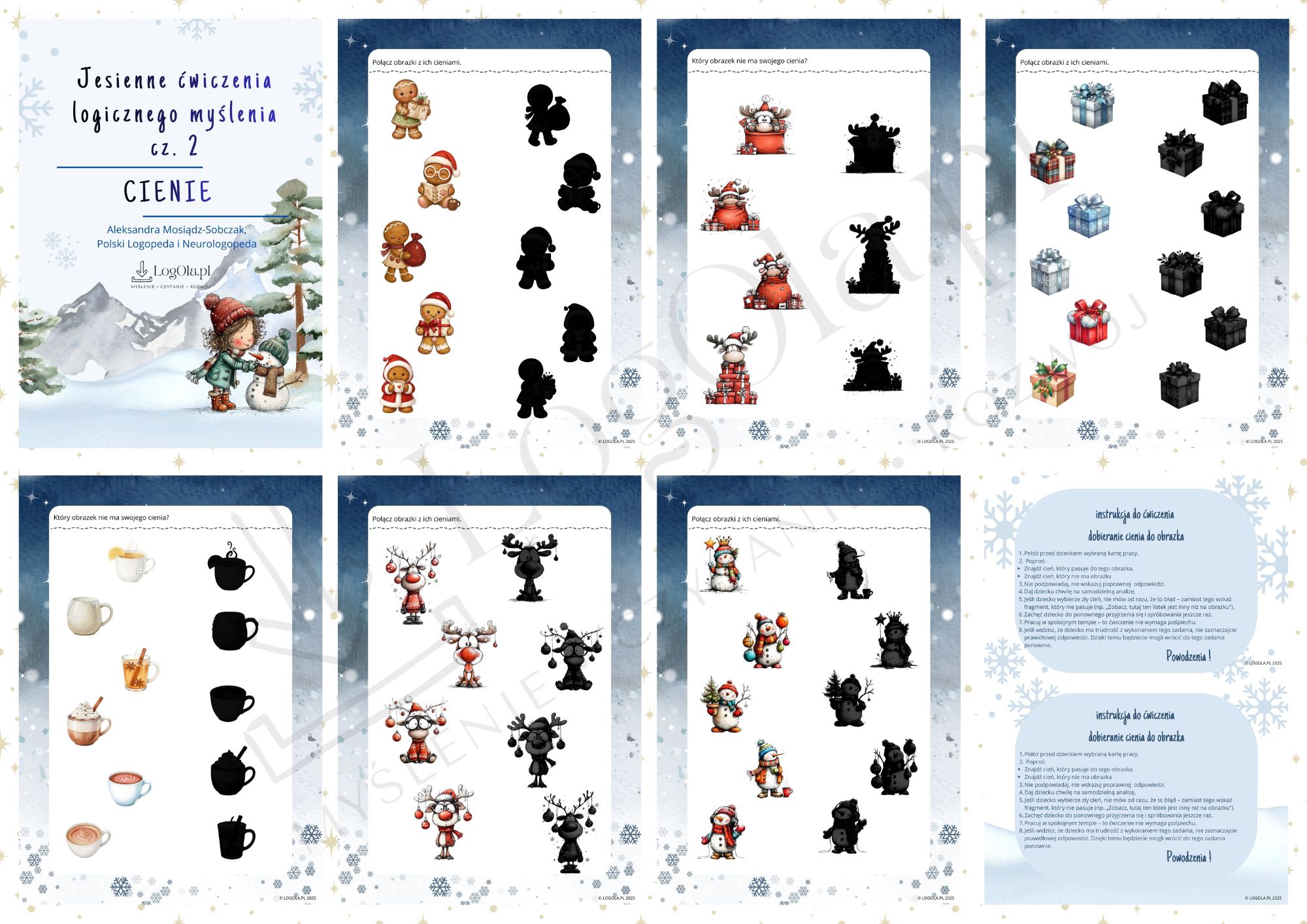✔ karty pracy z obrazkami i ich cieniami do dopasowania,